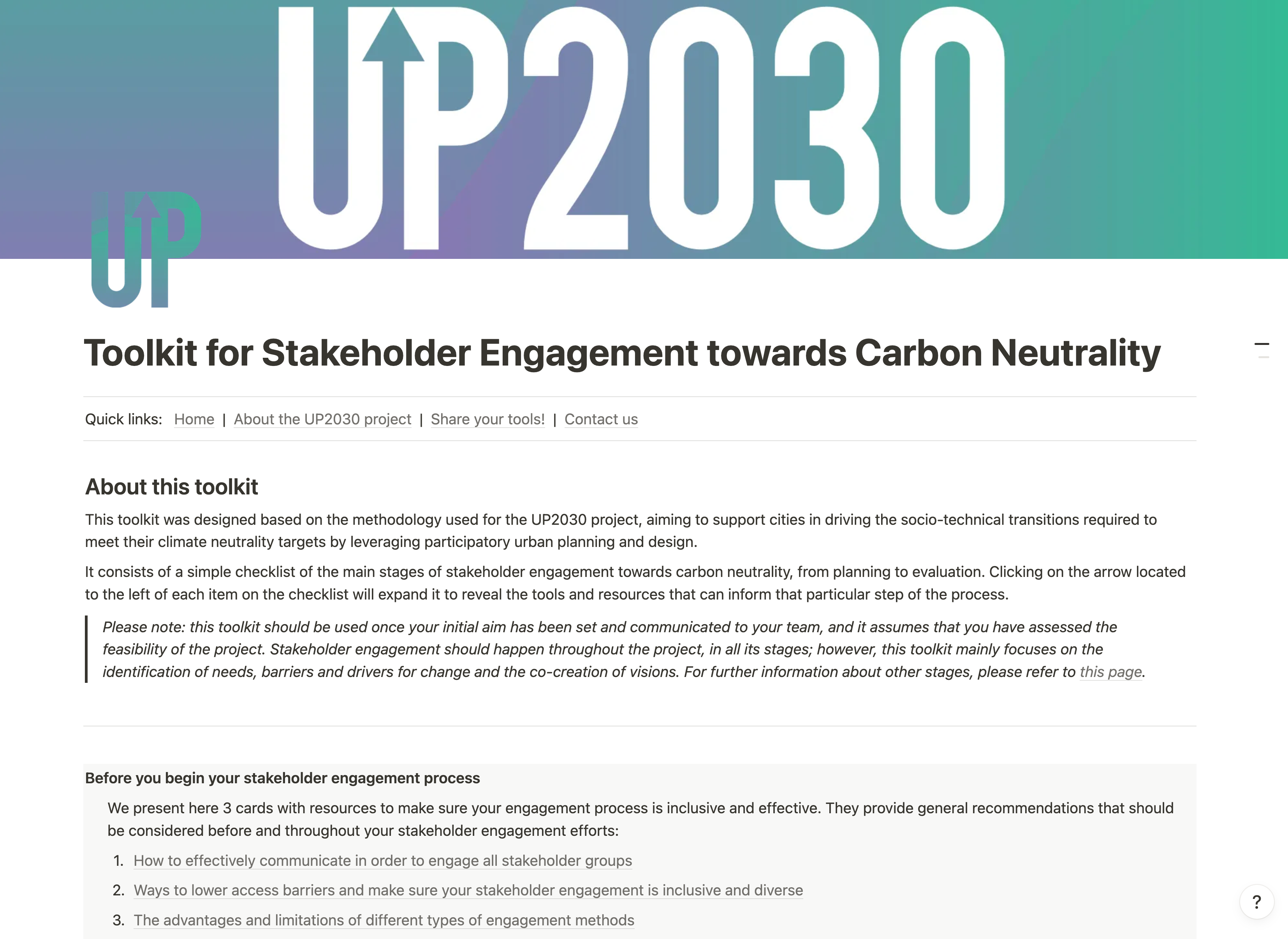 At the heart of UP2030 lies a commitment to leveraging urban planning and design as catalysts for deep socio-technical transitions. The project enables cities to move from climate commitments to concrete actions through tailored, city-specific interventions. These are grounded in a robust methodological framework — the innovative 5UP-approach — which integrates digital tools with practical and participatory methods. This approach helps cities navigate complexity, align strategies with local governance and resources, and embed climate neutrality in both strategic decisions and everyday practices.
