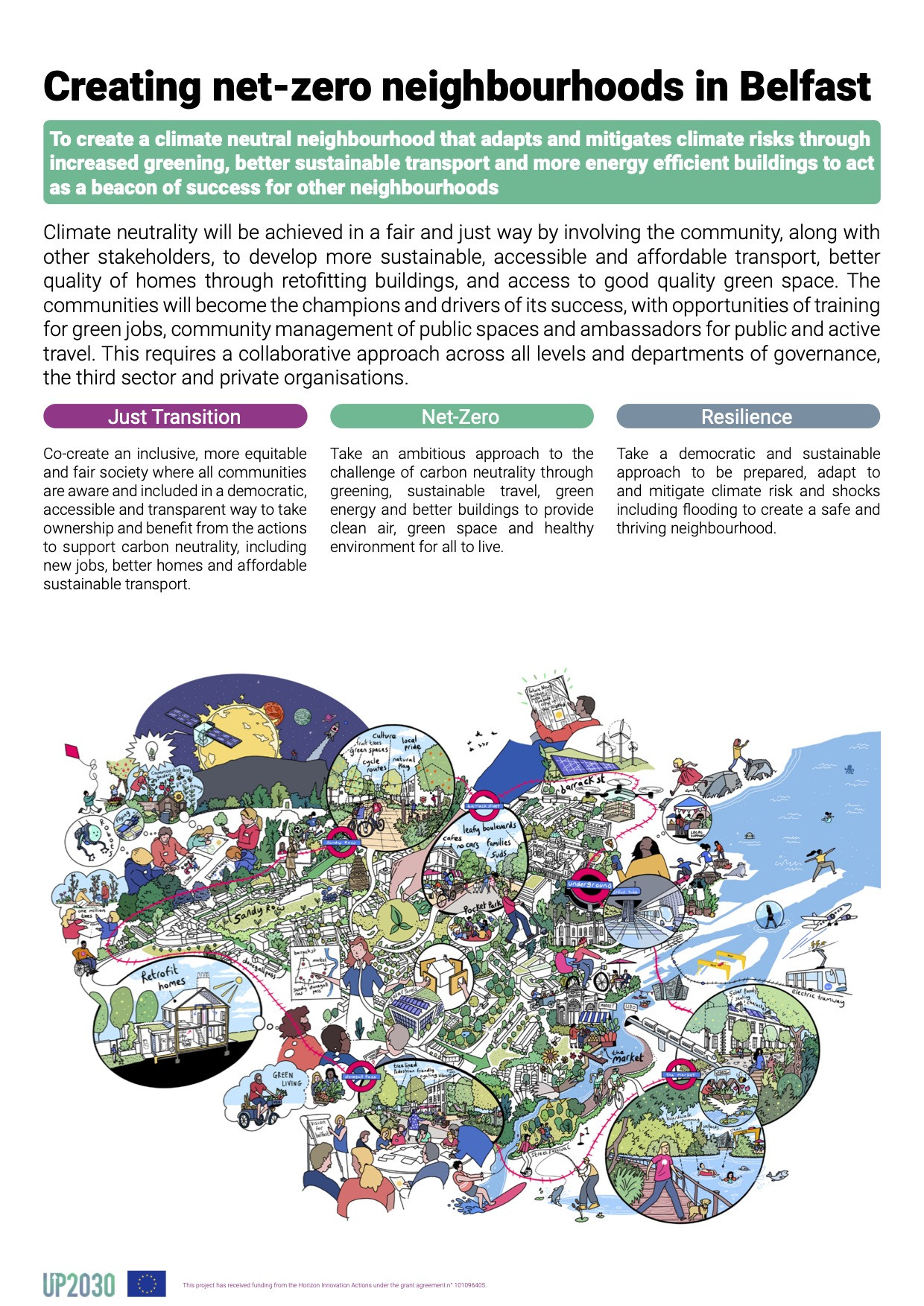 UP2030 is a Horizon Europe-funded project that aims to support cities in their transition towards climate neutrality by leveraging urban planning and digital tools. The methods and approaches developed by projects partners are applied and tested through 10 selected pilot cities - Belfast, Budapest, Granollers, Istanbul, Lisbon, Milan, Münster, Rotterdam, Thessaloniki, and Zagreb - and later prepared to be replicated across Europe.