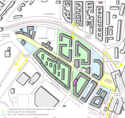 The cooperative housing project is situated in the 'Schöneberger Linse,' a new urban district with the potential to add over 900 housing units in the coming years, located between Südkreuz long-distance railway station and Schöneberg S-Bahn station.